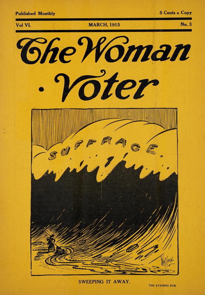 By publishing their own periodicals, suffrage organizations retained control of their message and reached new audiences. They communicated their position to readers through news articles, editorial columns, political cartoons, donor lists, and direct reports from the local organizations that were on the front lines of the suffrage fight. The Staten Island Museum’s collection of periodicals was donated by Museum founder Arthur Hollick and his wife Adeline Hollick and features three titles: The Woman Voter, a local paper published by the New York State Woman Suffrage Association, and two national papers The Suffragist, published by the National Woman’s Party, and The Woman Citizen, published by the National American Woman Suffrage Association.